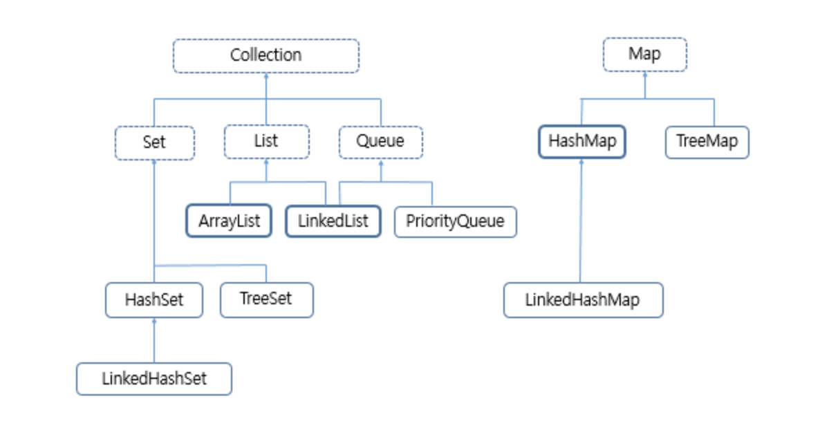 자바의 컬렉션의 구조는 다음과 같다.