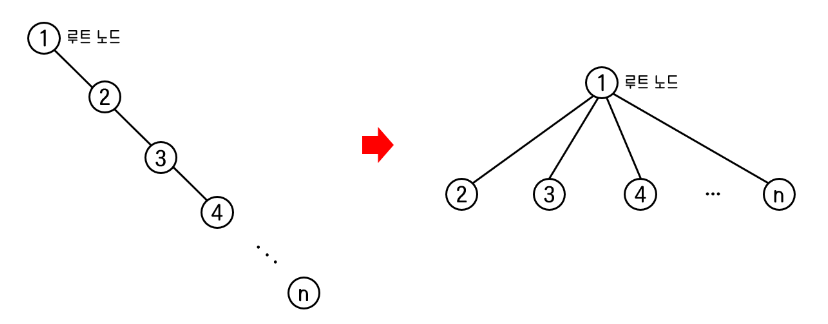 트리 탐색에 있어서 트리의 높이는 시간복잡도 측면에서 중요한 요소이다.